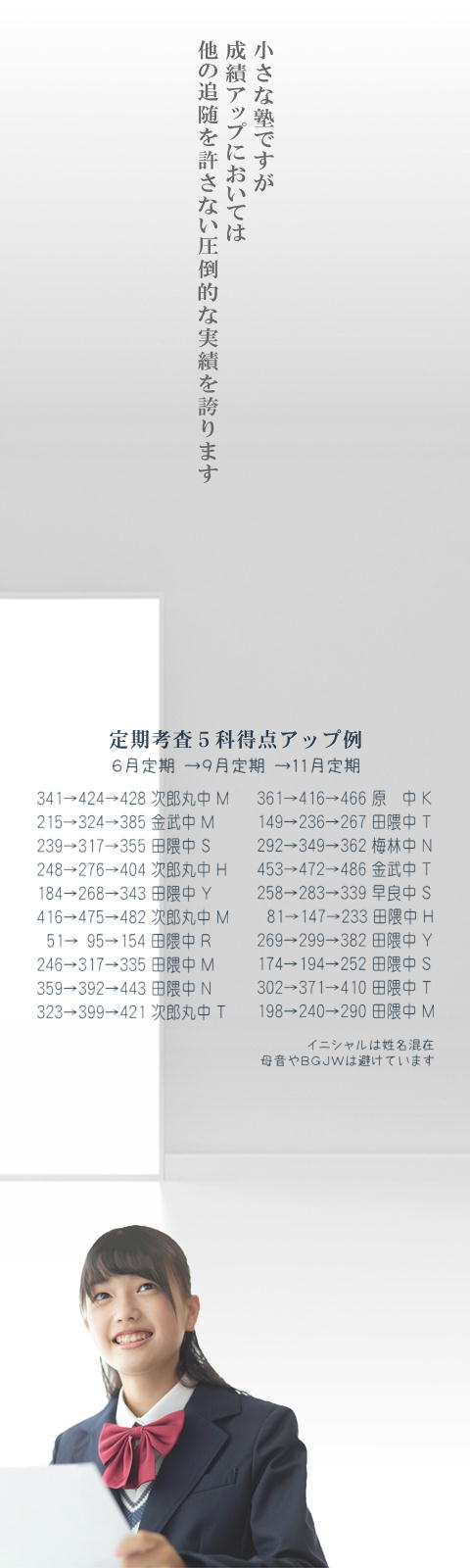 イニシャルは姓名混在 母音やBGJWは避けています