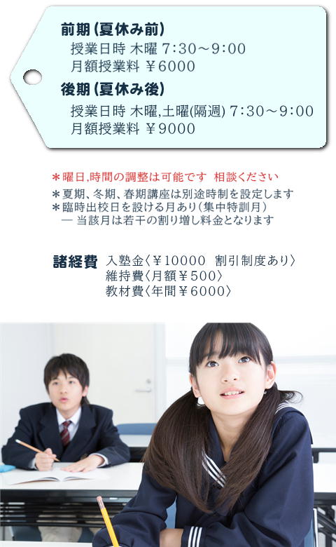 当塾は月に〇回の指導で〇円というシステムではありません。曜日固定のため月により指導回数は変動します。